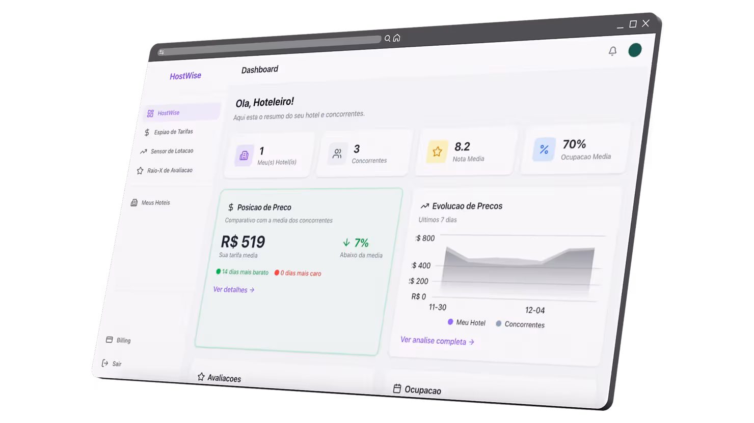 Quer saber se seu preço está errado agora mesmo? Não continue operando no escuro. A HostWise oferece a mesma inteligência das grandes redes hoteleiras, mas com simplicidade radical. Sem integrações complexas.